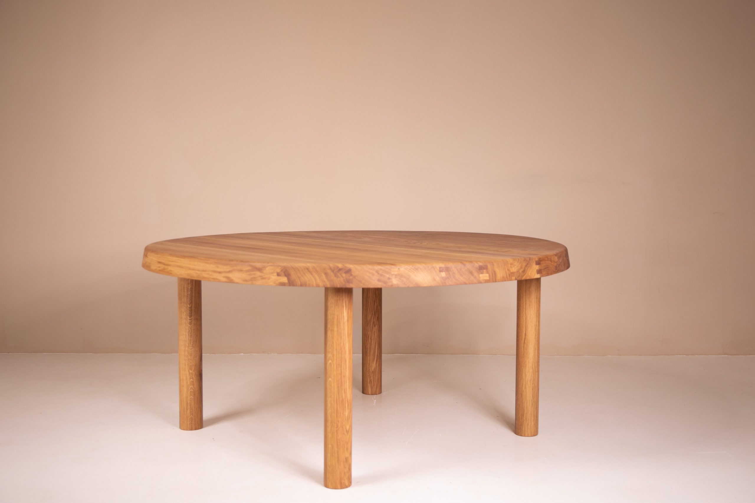 L’harmonie d’un meuble découle de l’équilibre géométrique et proportionnel des formes qui le constituent. Pierre Chapo avait parfaitement intégré ce concept, et T 02 en est une preuve. Le modèle est particulièrement spectaculaire en version 140 centimètres de diamètre, et le plateau circulaire est en parfaite adéquation avec l’épaisseur des pieds. Ainsi, les proportions servent la fonctionnalité du meuble, qui s’inscrit dans le catalogue Chapo comme unique table à manger circulaire jusqu’à la conception de la T 21, en 1973. La T 02, de conception simple, compte parmi les meubles intemporels et sophistiqués.