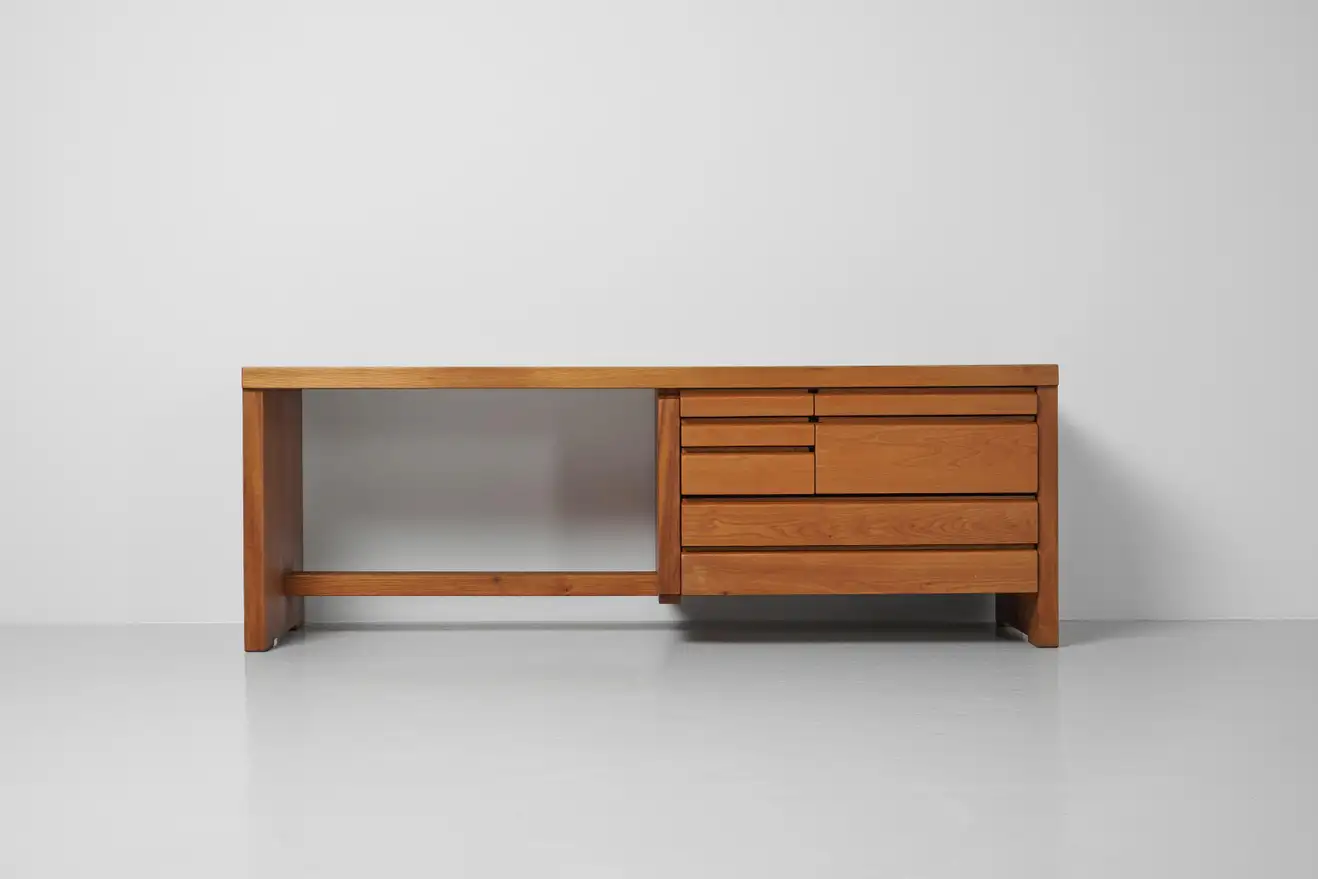 Le dessus à 65 cm nécessite un siège à hauteur 38 cm. Voir S 06 à S 12. Les tiroirs sont toujours à droite du plateau, qui peut aussi servir de secrétaire.