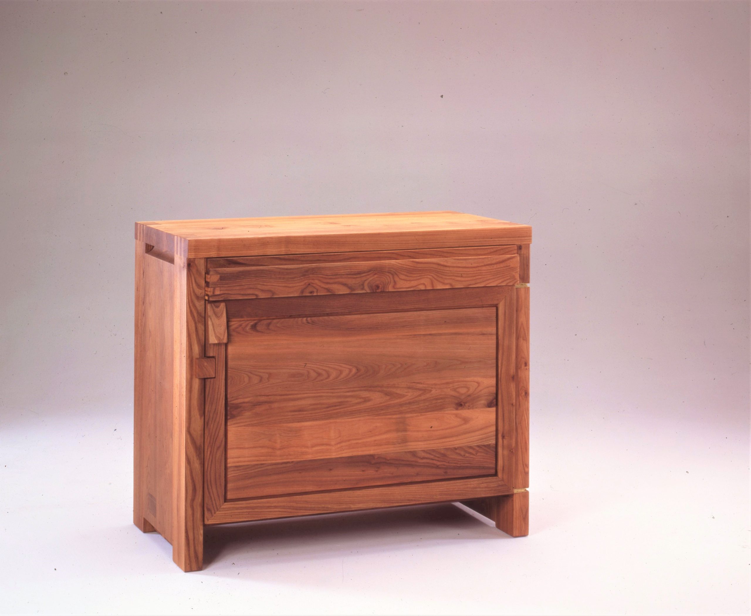 De structure identique, ces deux meubles sont souvent employés en prolongement du bahut R 08 ou comme chevet de lit L 15. Ils savent aussi se défendre seuls. Le bahut a un tiroir, une tablette.