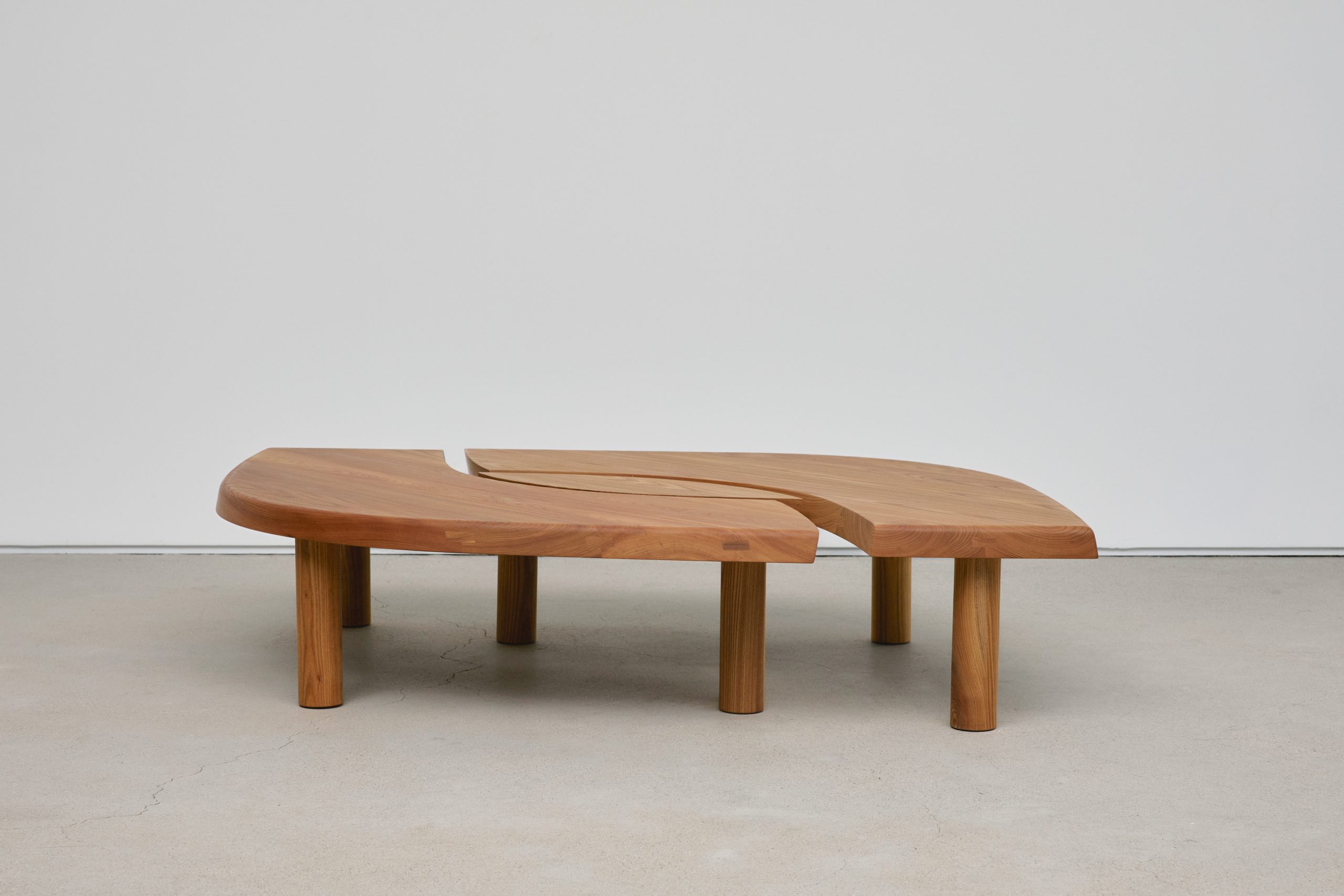 La table T 22 ouvre l’œil en 1972 et fait partie des rares formes libres dessinées par Pierre Chapo. Œuvre architecturale et trésor artistique, elle est composée de deux parties modulables à souhait. Conservant l’esprit Chapo, la T 22 est un meuble fonctionnel et polyvalent.